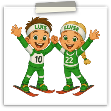 Luis & Luise sind natürlich immer mit dabei und sorgen für Motivation, gute Laune und echte Wintersport-Atmosphäre 😊